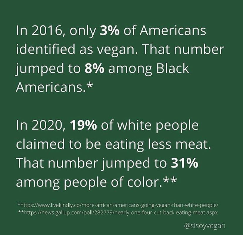 And in case this hasn’t already been made clear, veganism isn’t just for white folks. That may be the lifestyle portrayed in the U.S. of A, but that’s not the case globally, and there are Black vegan movements within the country. This nation-wide list of Black vegetarian societies looks a bit outdated but might be a good launching pad into more plant-based diets and community, for example! In fact, here are some steps you can take.